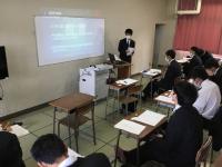 6月16日(火)総合の時間に、3年次生は「テーマ研究}研究計画発表会を行いました。これまで、自分で考えを深めてきたテーマ研究計画を発表し、同じグループの生徒から新しい発想や提案をもらう取り組みです。
