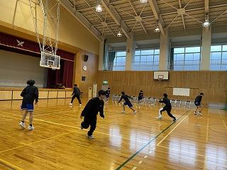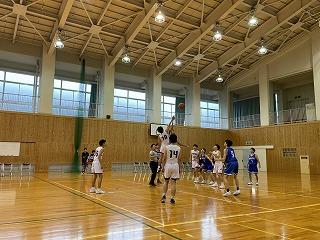3ポイントシュートを狙います      試合後には西高さんとも練習試合を