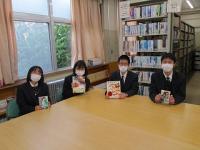 前期の図書委員長、副委員長が決定しました! 役員みんなでお気に入りの本を持って集合写真。