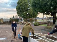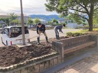 『土おこし、花壇整備作業』