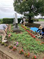 早朝暑い中ですが草むしり作業を行いました。教養部員、PTA役員、先生方とたくさんのご協力をいただきました。お花も大きく育つと思います。