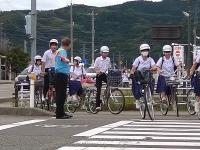 PTAの生活指導部員・役員の2・3名がチームとなり登校中の生徒とあいさつを交わしながら、自転車の乗り方や横断歩道の渡り方等を見守りました。