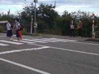 大阪屋ショップ前交差点では、秋の交通安全運動で市職員の方が北辰生を誘導して下さりました。