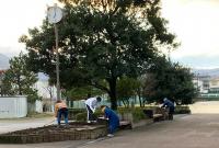 夏休み期間は1.2年生保護者による水やり&草取りを実施しています。教養部員、PTA役員、先生、保護者のたくさんの方々のご協力をいただき花壇には色とりどりの花が目を楽しませてくれています。