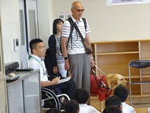 今日は、視覚に障害があり盲導犬を利用している方をお招きし、日常生活や盲導犬について学習しました。