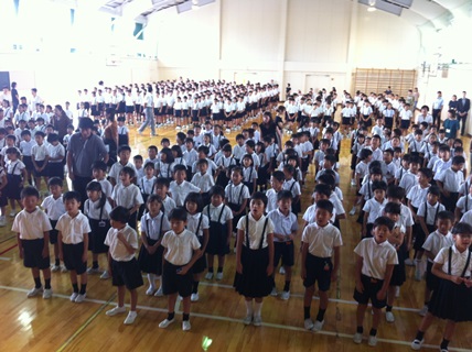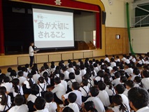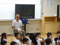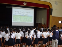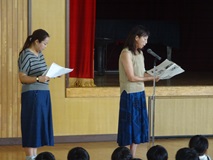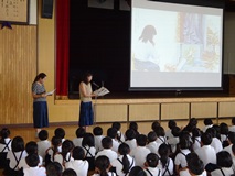 読み聞かせの後、校長先生から平和のためにみんなができることというお話がありました。「教室から意地悪な言葉や喧嘩をなくすことができれば、その教室から世界の平和が広がります。」「北陽小学校から意地悪な言葉や喧嘩をなくすことができれば、北陽小学校が世界の平和の中心になります。」というお話でした。