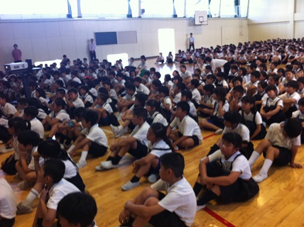 今日8月9日は長崎に原子爆弾が落とされた日ということで、平和集会を行い、全校で平和の大切さを考えました。