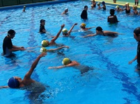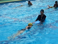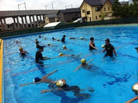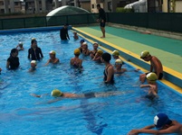 水泳が苦手な人を対象に水泳教室を行いました。普段は30人前後を一人の先生が指導していますが、今日は、一人の先生が数人に対して指導しました。たくさんの先生方の集中した指導で、たくさんの人がぐんぐんと泳力を付けることができました。明日も水泳教室を予定していましたが、天候が悪くなりそうなので、中止になりました。夏休み中には、学校のプールで更に泳げるように期待しています。