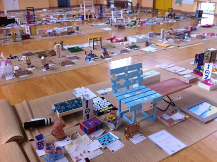 今日から3日間、夏休みの作品展が行われます。会場となった小体育館には、夏休み中の力作がたくさん並んでいます。