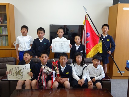4月23日に行われた「第12回白山市学童野球選手権春季大会」に出場した松任ブルーウイングスが見事優勝しました。朝一番に校長室まで報告に来てくれました。おめでとうございます。