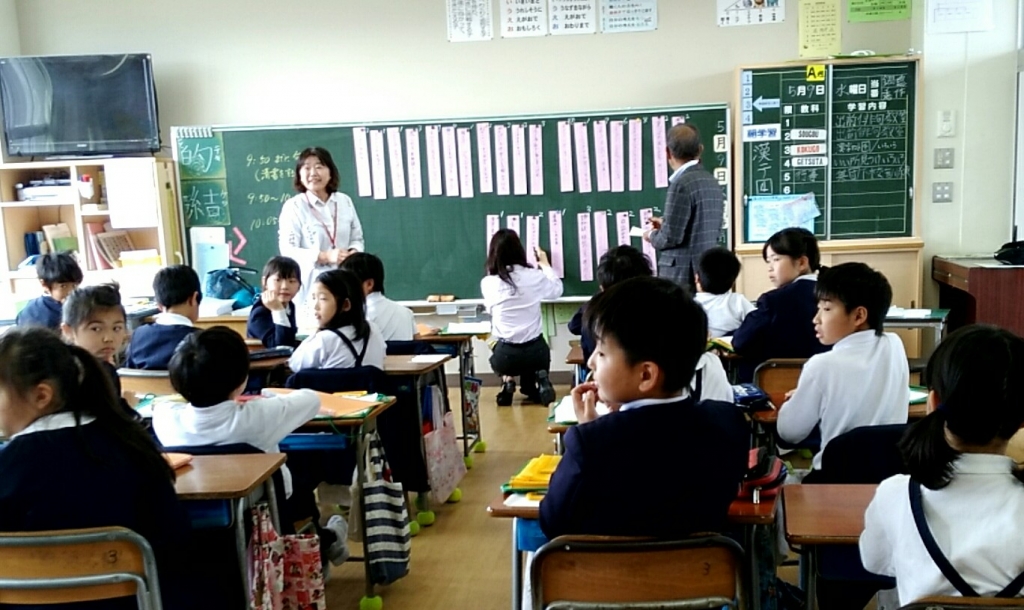 その後教室にもどって俳句を作って、黒板に貼り出し、素敵な作品を選び合う学習を進めました。指導後に講師の方から「子どもらしいすてきな感じ方が言葉に映し出されて、感心する作品がたくさんあった」と4年生の作品をほめていただきました。「新幹線とツバメ」とか「青蛙と冷たい草」・・・素晴らしいね4年生。