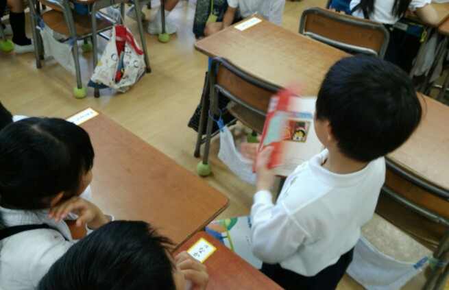 また、1階では異学年のかかわりの場として4年生が1年生に読み聞かせをしました。このかかわりの姿も素敵です。4年生、ありがとう。