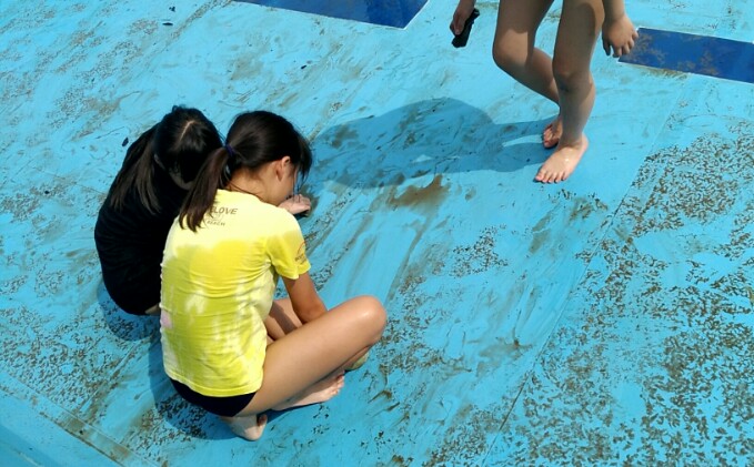 もうすぐ、水泳のシーズンです。今年も気持ちよく水泳の学習ができるように、5年生がごしごしとプールを磨いてくれました。ありがとう。みなさんのおかげできれいなプールで楽しい夏の学習ができそうです。