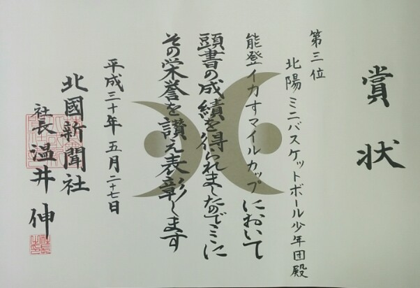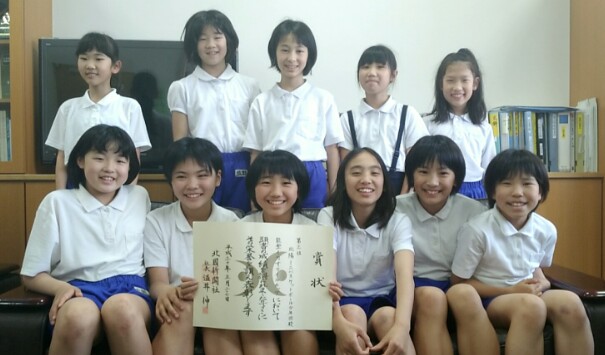 北陽女子ミニバスケットチームが第3位となり、校長室に報告しました。素晴らしい。早速、校内テレビ放送で表彰しました。これからも「がんばるがんばるスマイル!」めざして挑戦して下さい。応援します。
