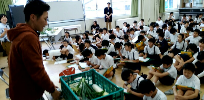 五年の総合的な学習の時間に八田町の農園の方に野菜を見せてもらいながら食の学習を行いました。生産者の方のお話には重みがあり、子ども達は熱心にお話を聞いていました。今度は実際に農園の方を見学させていただきます。よろしくお願いいたします。
