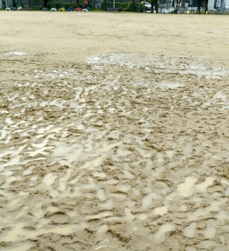 さて、北陽小の子ども達は外遊びする子がとてもたくさんいます。素晴らしいことです。外遊びする子が昨今かなり減少している中で、北陽っ子の誇れることの1つだと思います。かんかん照りの中でも外を走り回っているたくさんの姿があり、また、雨が上がるやいなや多くの子が外に飛び出して、ぬかるんでぐちゃぐちゃの運動場でサッカーを始めます。水たまりやぬかるみを避けて器用にドリブルする子もいれば、どろんこを気にせず水たまりをしぶきを上げて突進する子もいます。
