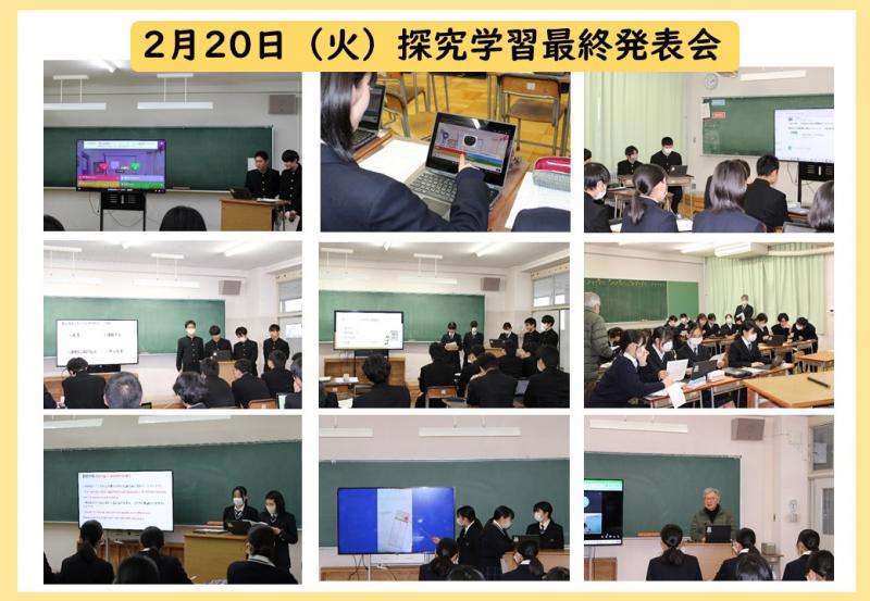 2月20日(火)「総合的な探究の時間」に研究してきた内容を発表する探究学習最終発表会を実施しました。