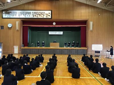 離任・退任される5名の先生方が別れの言葉を述べられました。勤務の長短はありますが宝達高校を愛する気持ちが伝わってきました。生徒たちは先生方の言葉を噛みしめていました。