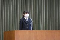 在校生代表の前原このかさんが「宝達高校での三年間を糧とし、これからも頑張ってください。」と送辞を述べました。
