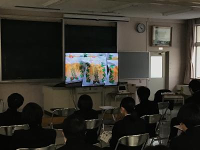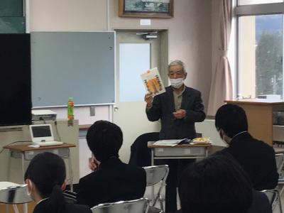 1年生の総合的な探究の時間に、取り組んでいるテーマの一つ、地元の伝統産業である「宝達葛」について詳しく学習するため、宝達葛生産友の会 佐藤 勝治 様にお越しいただき、特別講義を行っていただきました。