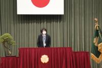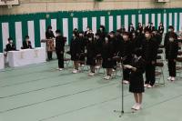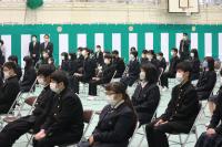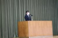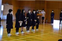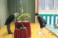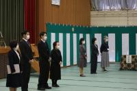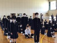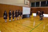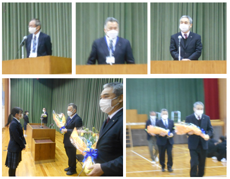 離任式では、異動される上村先生が「皆さんは、『あいさつは学校をつくり、町を作り、人をつなぐ』という本校の標語のとおり、さわやかな挨拶のできる生徒さんでした。登下校時に校舎に一礼するという習慣も、これからも引き継がれると良いなあと思います。」と挨拶をされました。