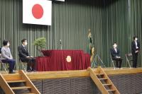 前期生徒会役員任命式を行いました。生徒を代表して生徒会副会長の喜多さんが任命証を受け取り、生徒会長の大野さんが全校の前で意気込みを語りました。体育祭や宝高祭など、前期は生徒会役員7名を中心に学校行事を運営していきます。