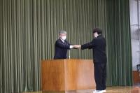 退任式では吉田教頭の「皆さんの今後の進路に向けて、意識・意識下・セルフイメージの3つが大切です。また、いずれは世界を旅して広い視野を持ってほしいです。」とのお別れの言葉に続き、笠間校長からは「宝達高校には三度赴任しました。若いころと、15,6年前と、3年前です。この3年間は大変充実した楽しい3年間を過ごさせていただきました。さわやかな気持ちでこの日を迎えられて幸せです。皆さんのおかげです。」とのご挨拶を頂きました。