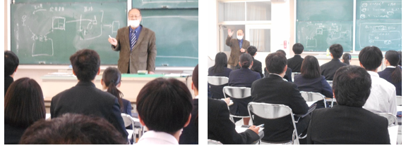就職に関する基本的な事から心構えまで、分かりやすく教えていただきました。生徒はうなずきながらお話を聞いていました。