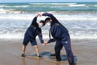 本校を出発し、千里浜海岸を通って目的地に向かいました。