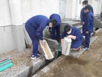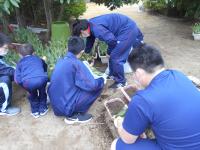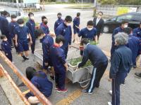 今日の7限目に、全校生徒でプランターの撤収と宝達駅の清掃、土の処理、プランター洗浄をしました。