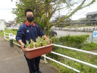 昨年度、生徒が植え、設置した宝達駅のチューリップも役目を終えました。