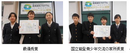 最優秀賞は「海洋プラスチックごみ」北村さん、荒井さん、松本優美さんで、2月14日の全国大会の出場となります。国立能登青少年交流の家所長賞は「子どもたちが安全に暮らせるような街づくり」西沢さん、中橋さん、坂下さん、鉾田さんです。おめでとうございます。