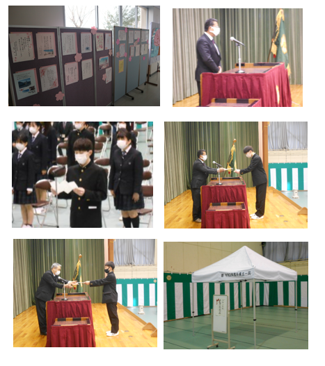 春めいた光の中で、温かく卒業生を送り出す式になりました。なお、前日の14:20より行われた卒業記念品目録贈呈式において寄贈されたテント一式が、卒業式会場に披露されました。