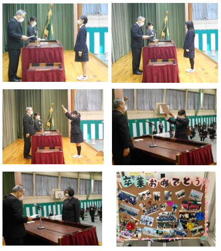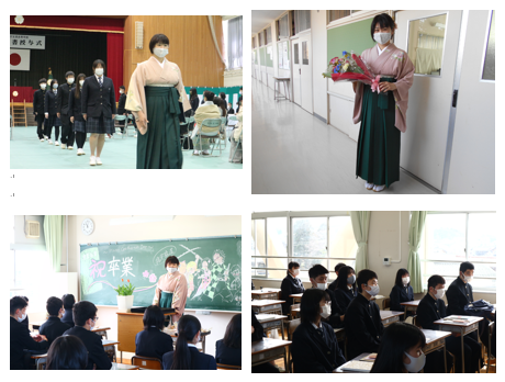 今年度は、卒業生と在校生代表の送辞の生徒、保護者、教職員のみ参列した式となりました。
