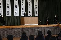 笠間学校長から『幸せに生きるヒント』という題で、式辞の言葉がありました。冬休みの宿題として「人を喜ばせよ