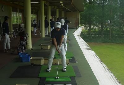 ラウンド練習は中止となりました。その分、びっしりと練習場で、