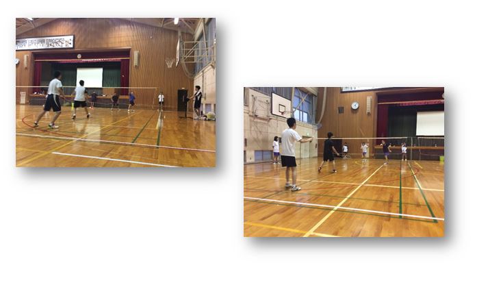 体育館はとても蒸し暑かったのですが、久しぶりの運動に中学生は楽しそうに活動していました。初心者の中学生も一生懸命シャトルを追いかけていました。高校生は先輩らしい振る舞いで、中学生をサポートしていました。