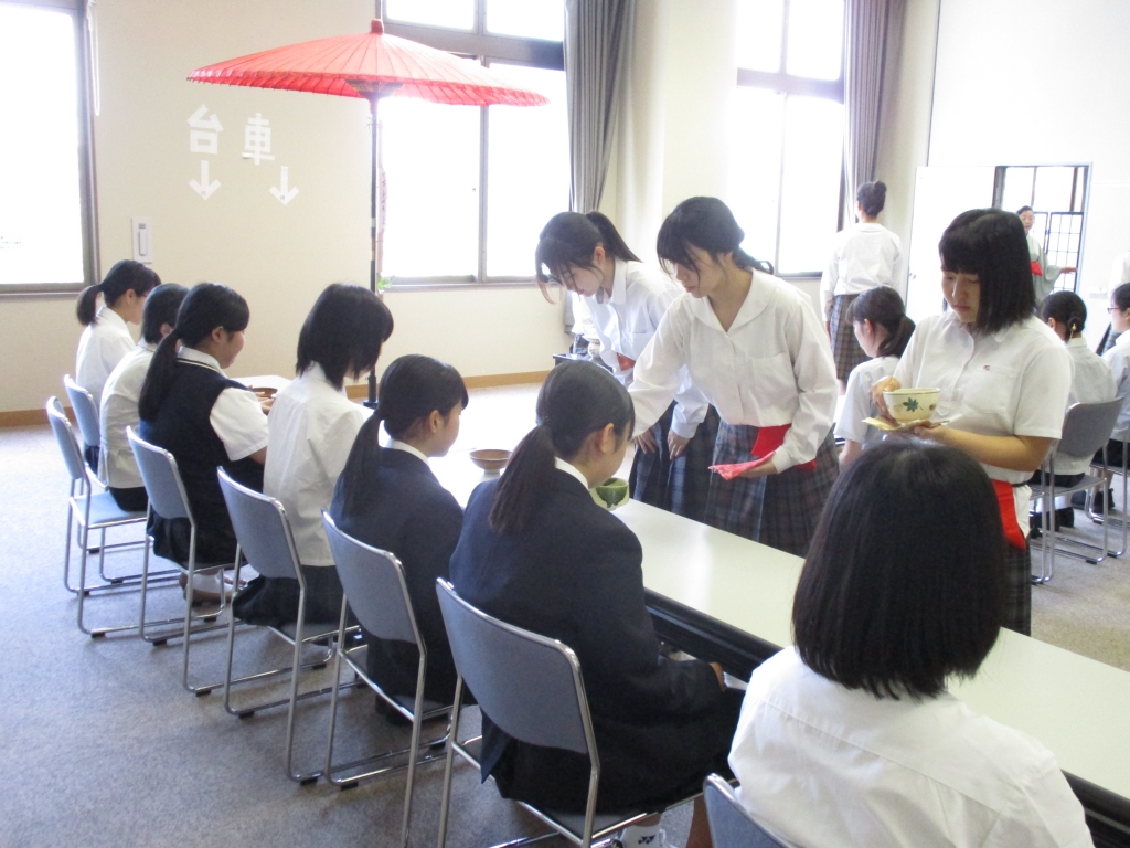 茶道部では、例年お茶会を行っています。お茶席では、お点前を行い、美味しいお抹茶とお菓子でおもてなしを行いました。緊張した様子でした無事に行うことができました。 (*^_^*)