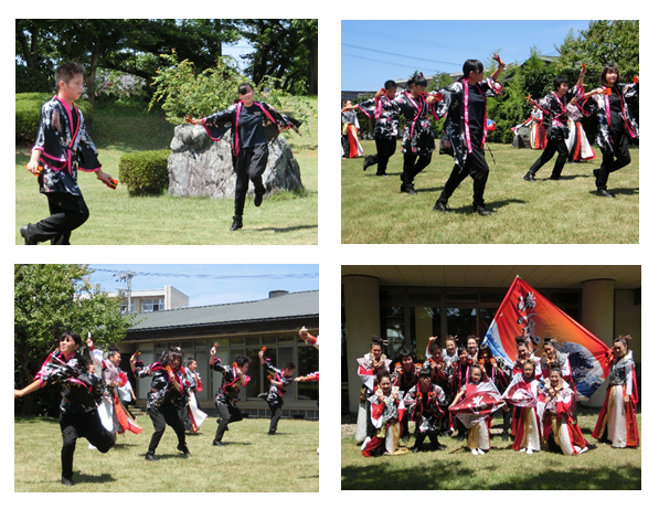 2017年8月7日 15時45分8月3日(木)、宝寿荘で行われた第4回宝寿荘夏祭りに出演してきました。YOSAKOIソーラン部単独で、「踊れ日本海~炎~」と「絆」を踊りました。今回はなんと、よさこい渚一世風美の皆さんとコラボレーションして「舞桜」「Street of the Soran」「踊れ日本海」の3曲も踊りました。普段、他のチームさんと合同で踊ることがないので、良い経験になったと思います。よさこい渚一世風美の皆さんありがとうございました。