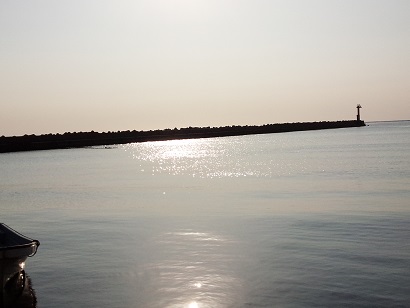 朝日と堤防
