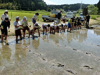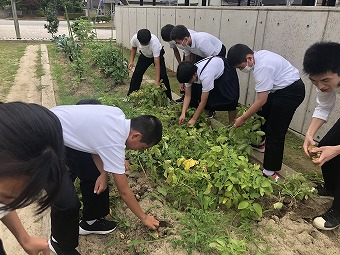 宝立小中学校では,宝立町にあるビオトープの中にある田んぼの田植えや稲刈りを毎年行っています。今年も8・9年生が稲刈りを行いました。