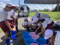 ※地元の方々が講師となり、やさしく説明してくださったり一緒に採取してくださったり… 児童は興味津々!