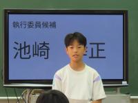 9月25日(水)、後期生徒会役員選挙が行われました。立候補者が後期生徒会の活動にかける思い、学校をよりよくしていこうとする思いを、全校生徒に訴えていました。話す姿勢、聴く姿勢ともによく、しまった演説会になりました。