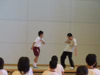 9月25日(水)と26日(木)に、昨年も指導していただいた大峰順二先生にご来校いただき、いいろいろと指導していただきました。5・7年生の中期ブロックは、ブロック発表に向けて効果的に行うにはどうせればいいかなど、8・9年生の後期ブロックは、演劇に向けて基本的な動きや発声などについて、教えていただきました。生徒たちは真剣そのもの。教わったことを今後の練習等に活かしていきましょう。