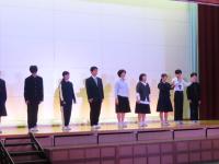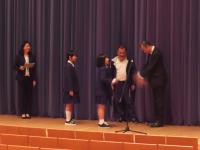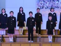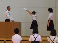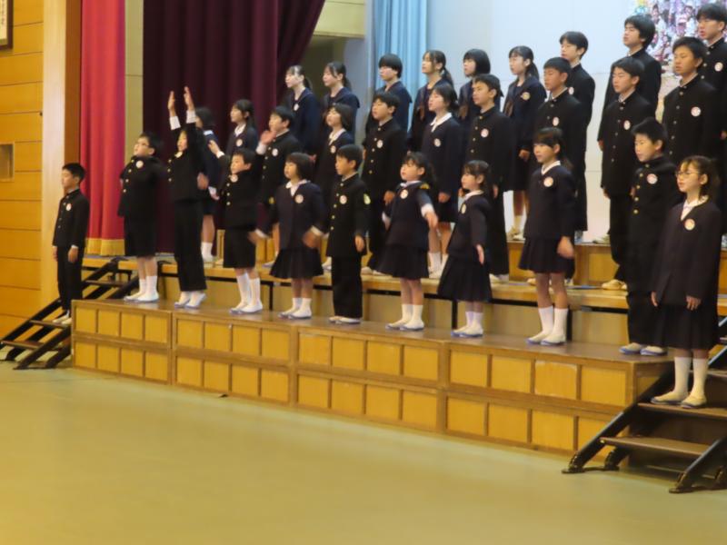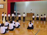 10月2日(水)、後期児童生徒会役員の認証式が行われました。役職と名前を呼ばれた時に、総勢13名の役員がしっかりと返事をし、みんなの前に凛とした態度で整列しました。これからの意気込みも感じられました。代表2名の児童生徒、5年生中口さんと9年生山岸さんが壇上に立ち、校長先生から任命証を手渡されました。降壇する際に、それぞれの決意表明を述べていました。全員で協力してより良い学校を築いていきましょう。