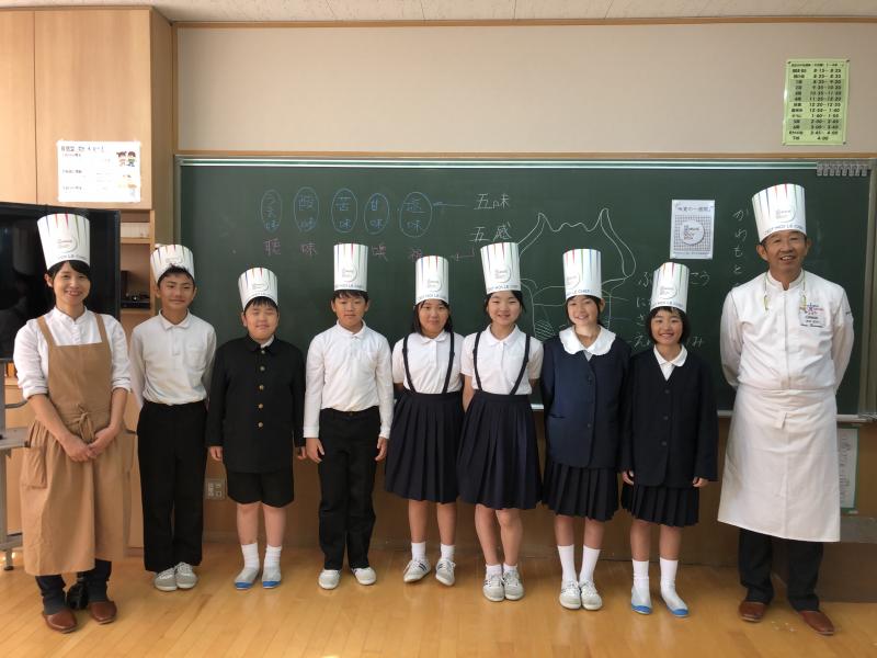 午前中、5年生の対象に「味覚の授業」がありました。川本シェフを講師にお招きし、舌には甘味と塩味の感じる場所があることなどを教えていただきました。実際に目を閉じて、グミがグミだとわかるか体験もしました。楽しくおいしい授業になりました。川本シェフ、お忙しい中ありがとうございました。