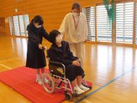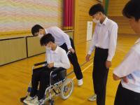 午後には、8・9年生の高齢者疑似体験学習が行われました。社会福祉協議会の方2名を講師にお招きし、車椅子体験や視界の体験をしたりしました。実際に体験することで、お年寄りの気持ちを理解することができました。講師の皆さん、お忙しい中、ありがとうございました。