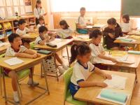 前期課程「徒競走練習」 5年生「自学ノート」の見せ合い 1・2年生「魚釣り」