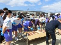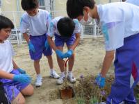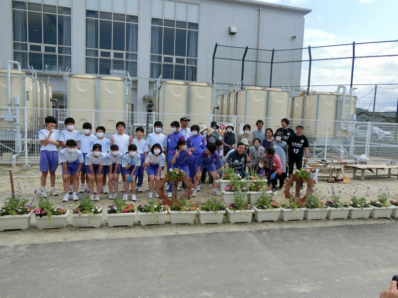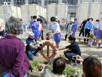 6月5日(水)午後、好天候の中で、花のプランター設置場所の看板作りをしました。仮設住宅にお住いのお年寄りの方々との共同作業で行われました。カインズさんの皆さんのわかりやすい説明を受けながら、穴掘りや看板作りの作業をし、皆さんとともに完成させることができました。生徒たちの声として、「こんな作業を初めてやりました」や「とても楽しいです」などがあり、有意義な時間を過ごすことができたようです。また、この共同作業を通して、コミュニケーションを図る良い機会にもなりました。先生方も生徒たちを見守りながら、カインズさんや地域の方々とお話することができて、笑顔も見られ、和みのひとときとなったようです。このような機会をいただいたカインズさん、珠洲市教育委員会の皆様に感謝いたします。ありがとうございました。