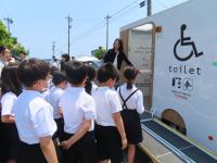 トイレカーは、現在世界に一台しかないんだそうです。そんなすごいものが宝立小中学校にあるんだと子どもたちは嬉しそうに見学して話を聞いていました。